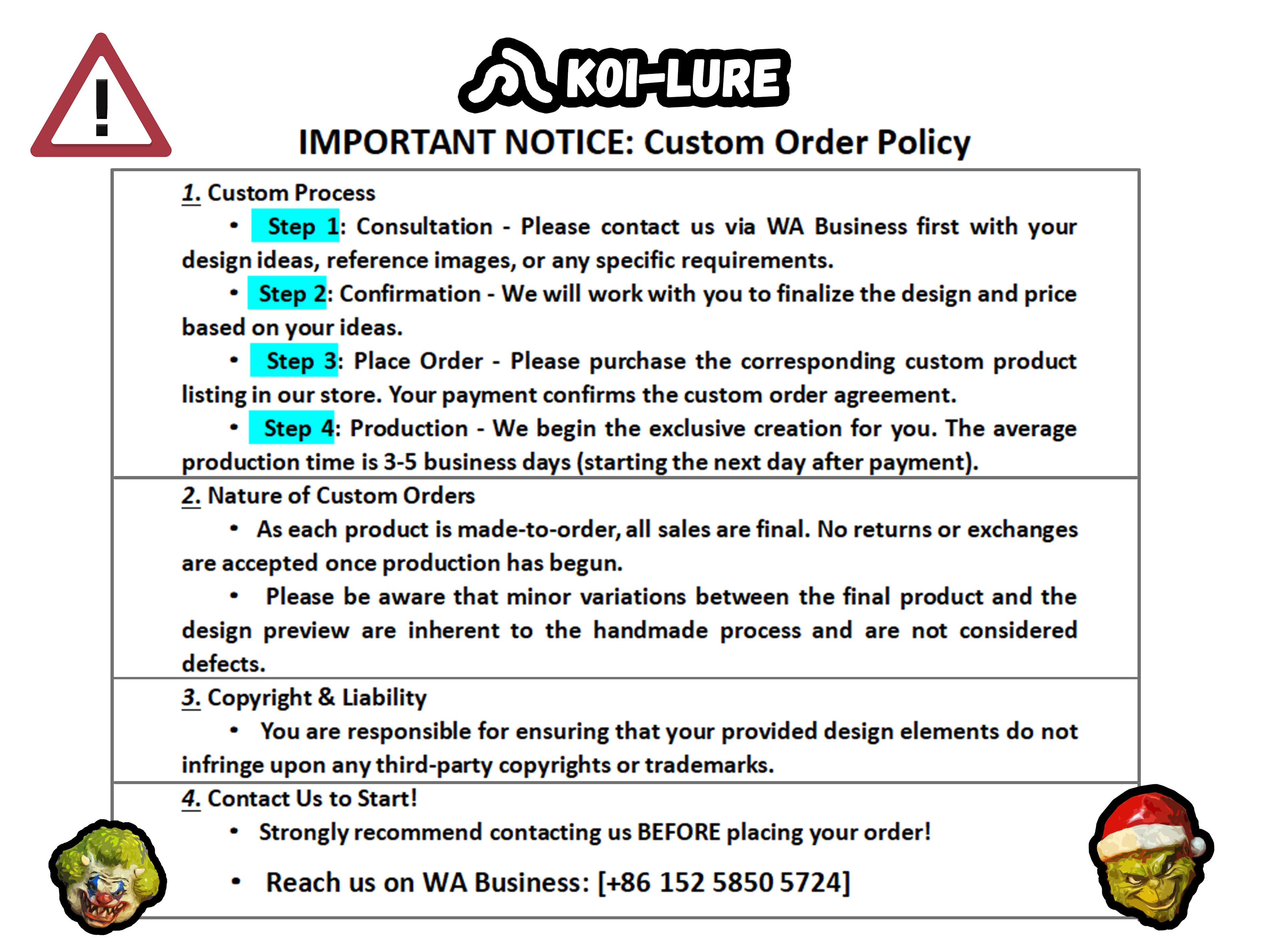 Custom Handmade Fishing Lure | Personalized Design - Contact us via WA Business to Confirm Design Before Ordering (+86 152 5850 5724)